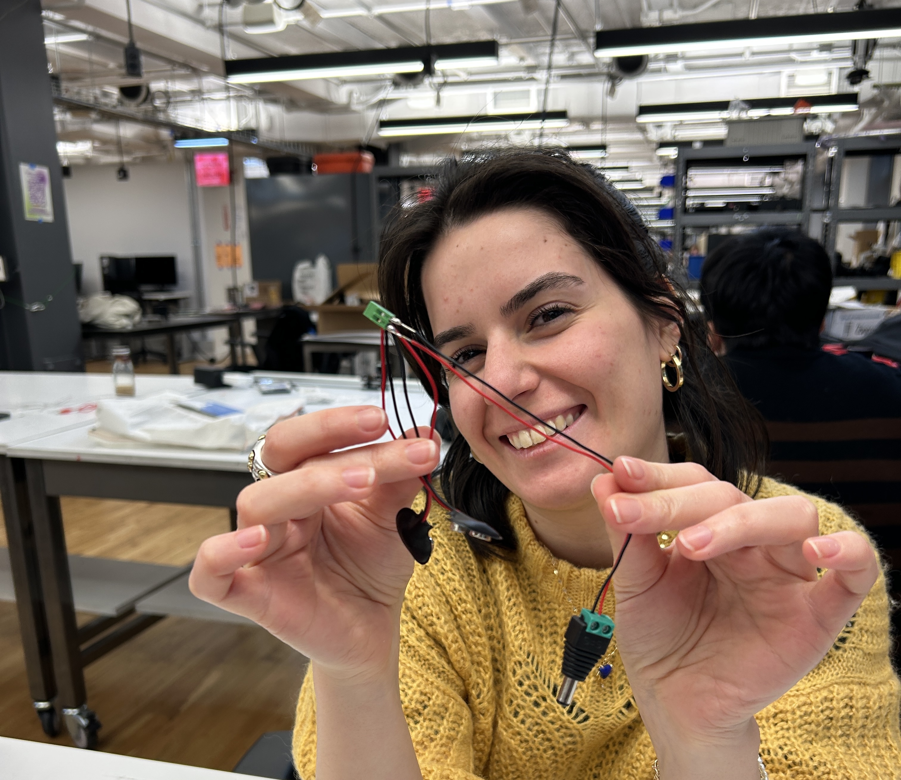 We were able to solve the power issue with the help of David Rios. We ended up having to add another 9v battery, which required some fancy soldering by Elif.