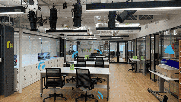 For Herding of the Office Chairs, we challenged ourselves to move beyond the 2D paper setup and use our surroundings. The idea was to make the chairs move together, on their own. It involved a lot of running around, seen here in the timelapse video we shot while we made it: