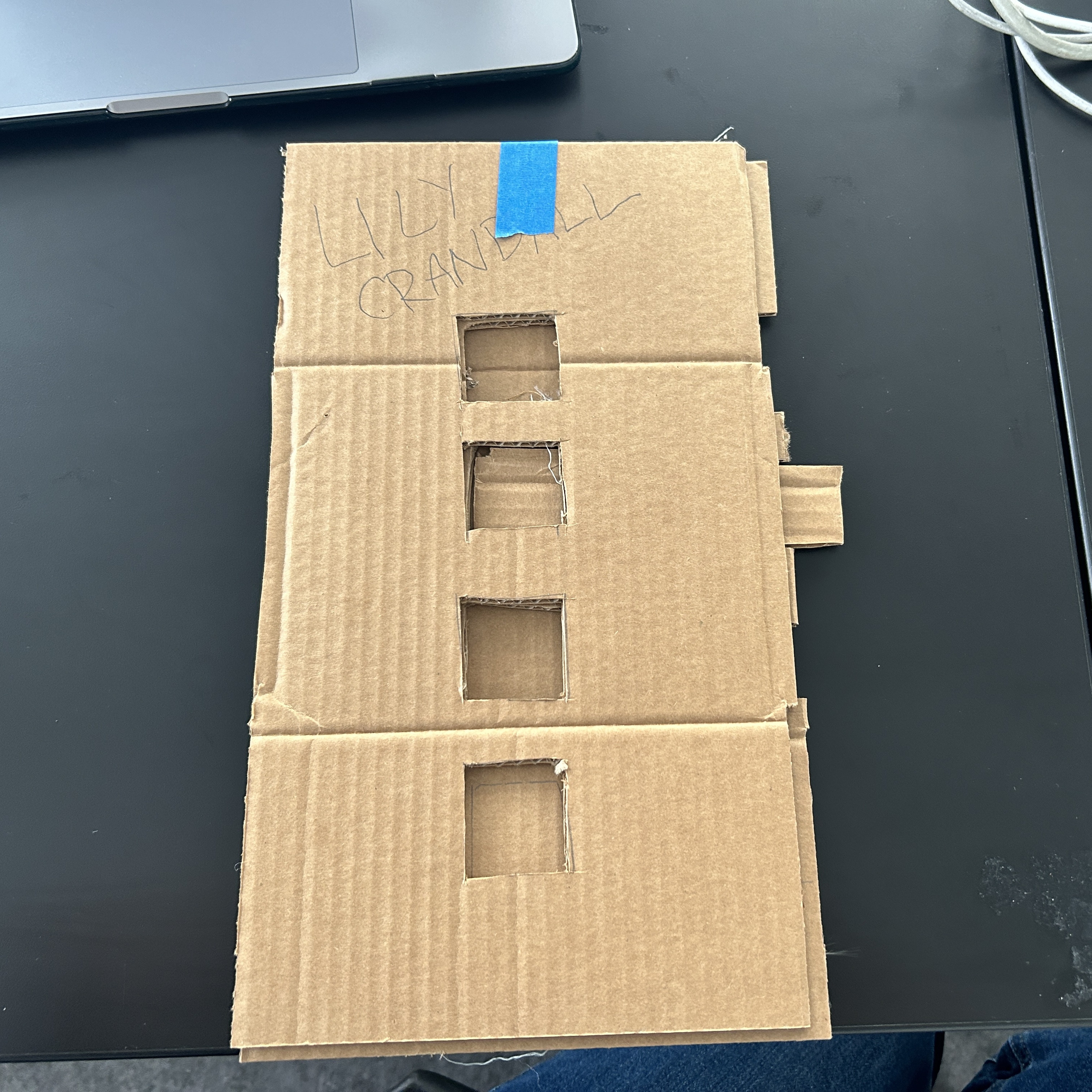 I created this prototype out of paper to get an idea for sizeI knew I wanted the final version to be made out of wood, so I made a new prototype out of cardboard, which would act more like wood dimension-wise.