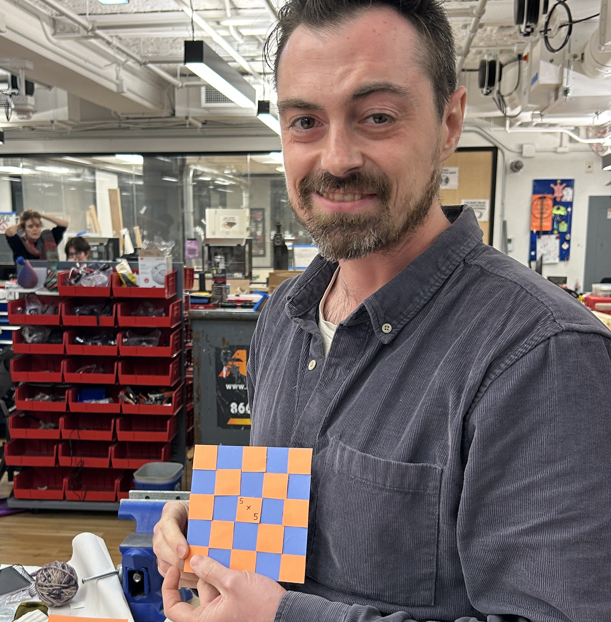 I showed this project at the ITP Camp “Show All Things” event. Next to it, I played a slideshow of photos of the campers holding the squares they made.