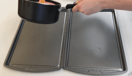 - Remove from heat and pour evenly onto 2 baking sheets.