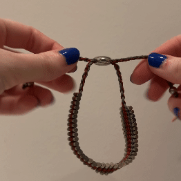 This is a bracelet that is tightened by pulling the two ends of the bracelet through a bead.