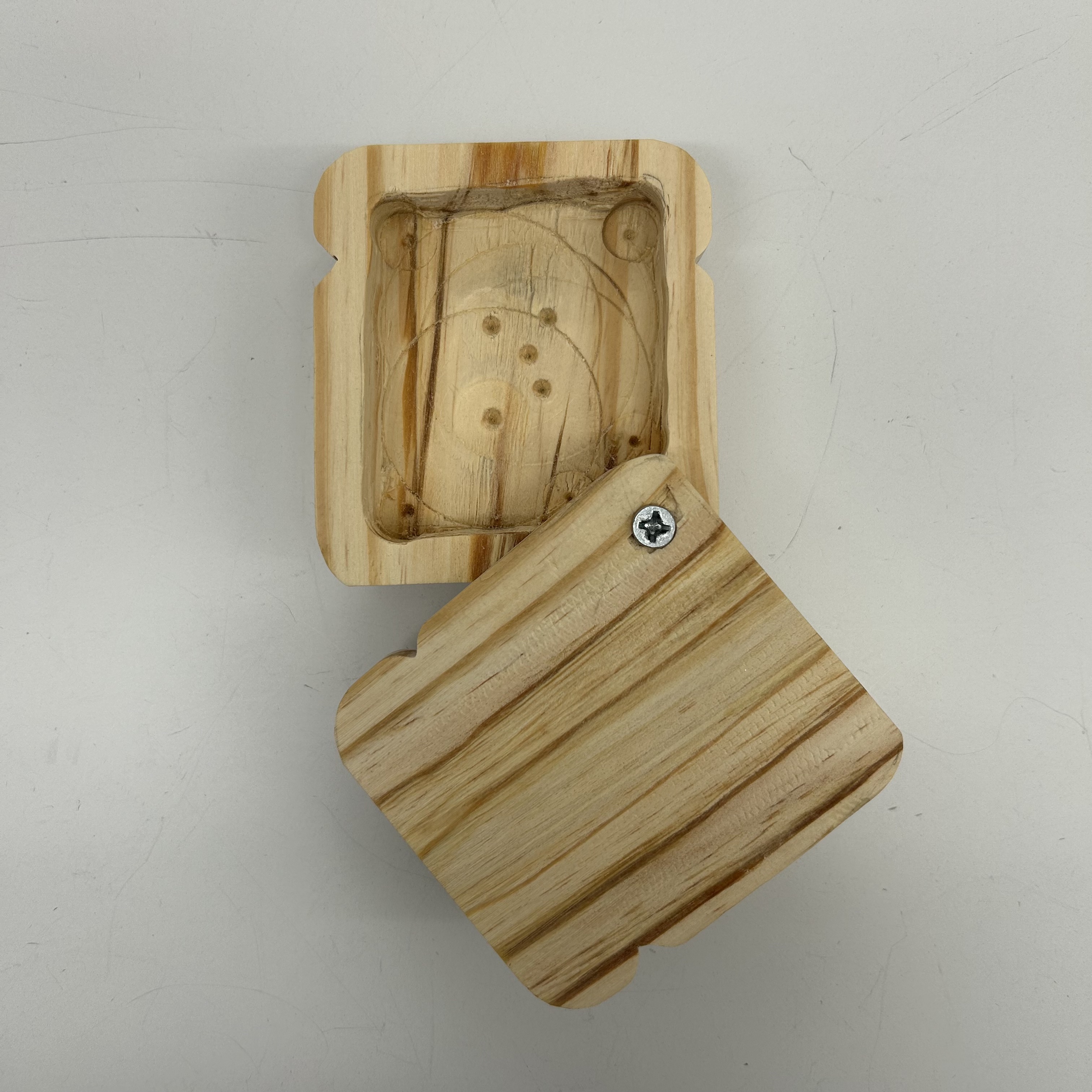 I can’t believe how much waste there was from hollowing out the box. I couldn’t find a dremmel that worked so I used a chisel to even out the edges. It worked okay. After that I went in with sandpaper to even the inside edges more. It is not perfect, but I am happy with the result.