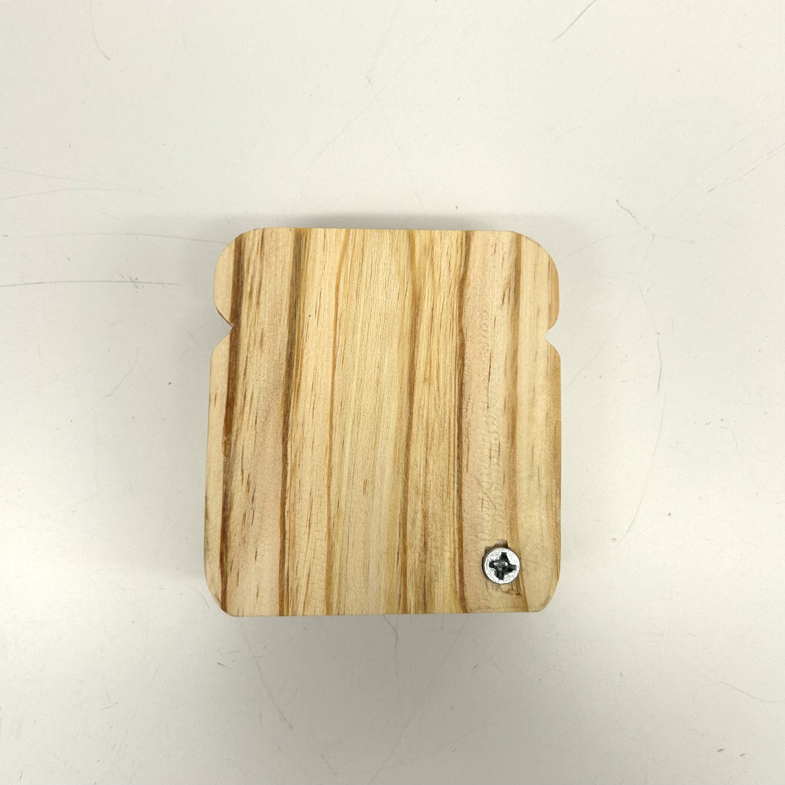 The last step was to get the screw in. I thought this would be the easiest part, but there was a big knot in the wood in the corner I made the hole, so the wood started to split when I screwed it in. You live and you learn.