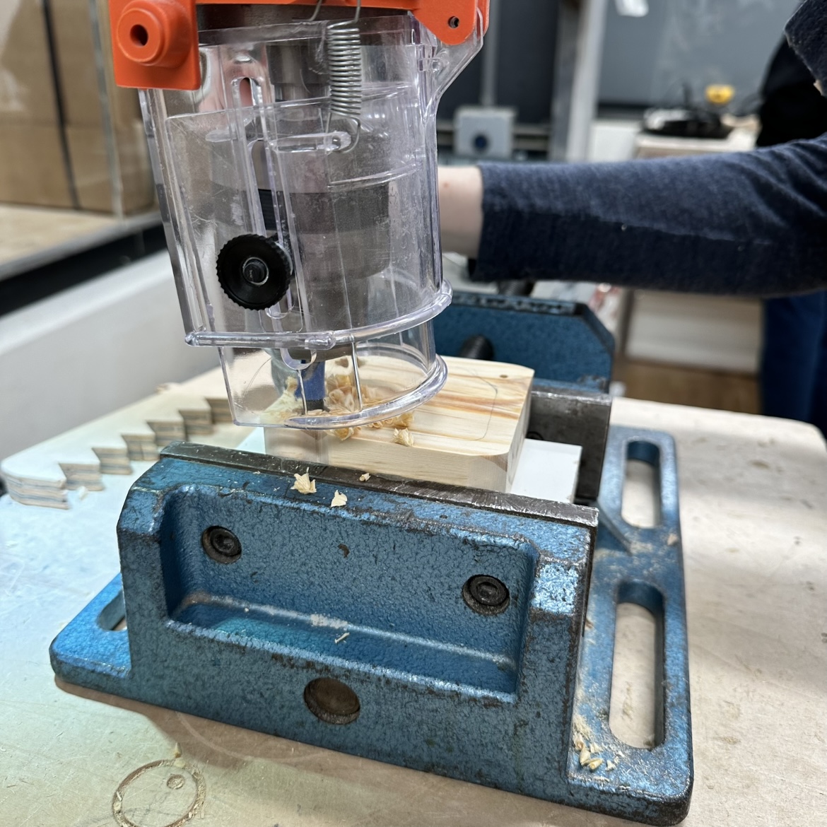 In planning out this box, I wanted to push myself to make something further than the traditional box shown in the example, while also being mindful of the fact that I had never used any of the tools in the shop before.