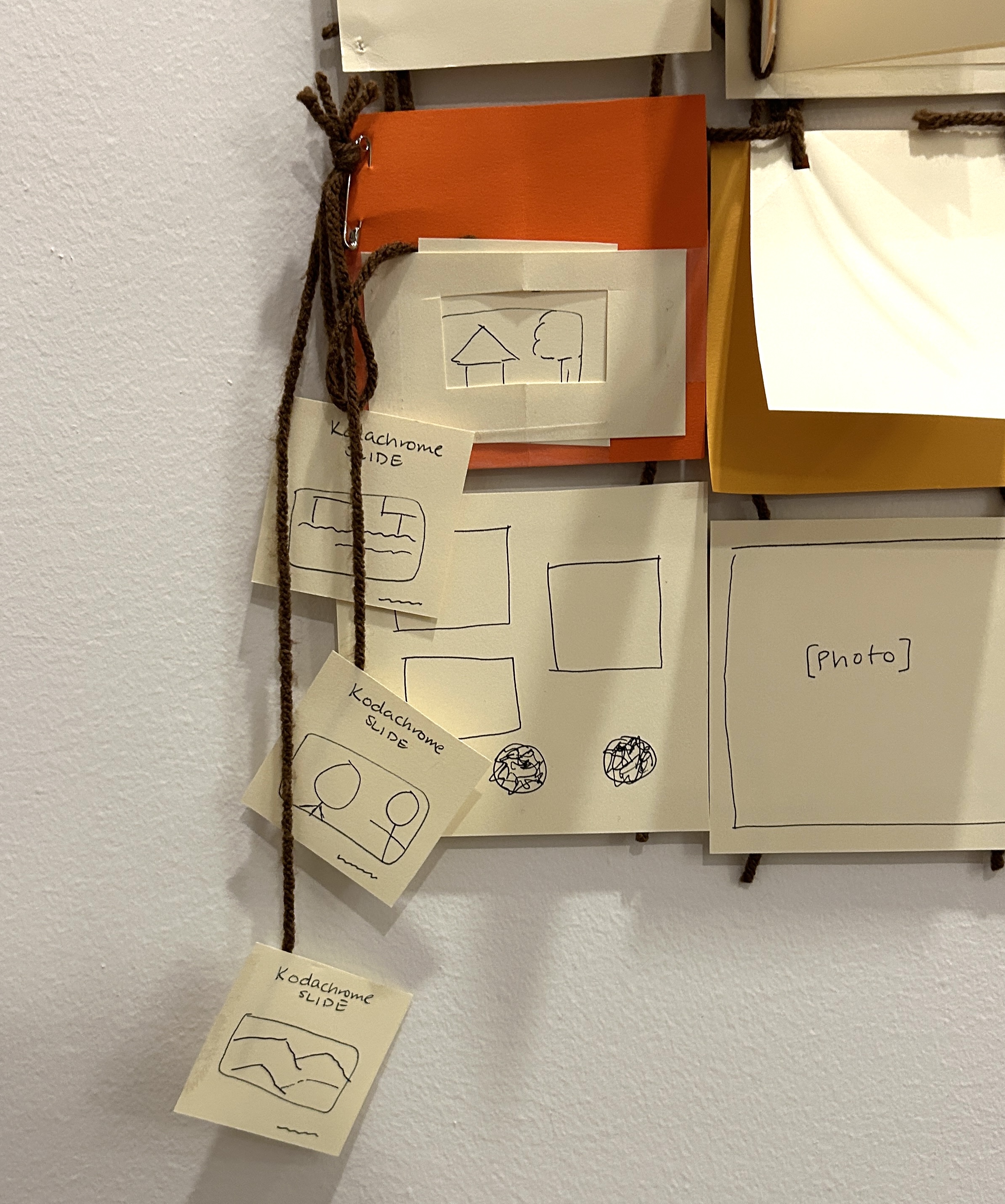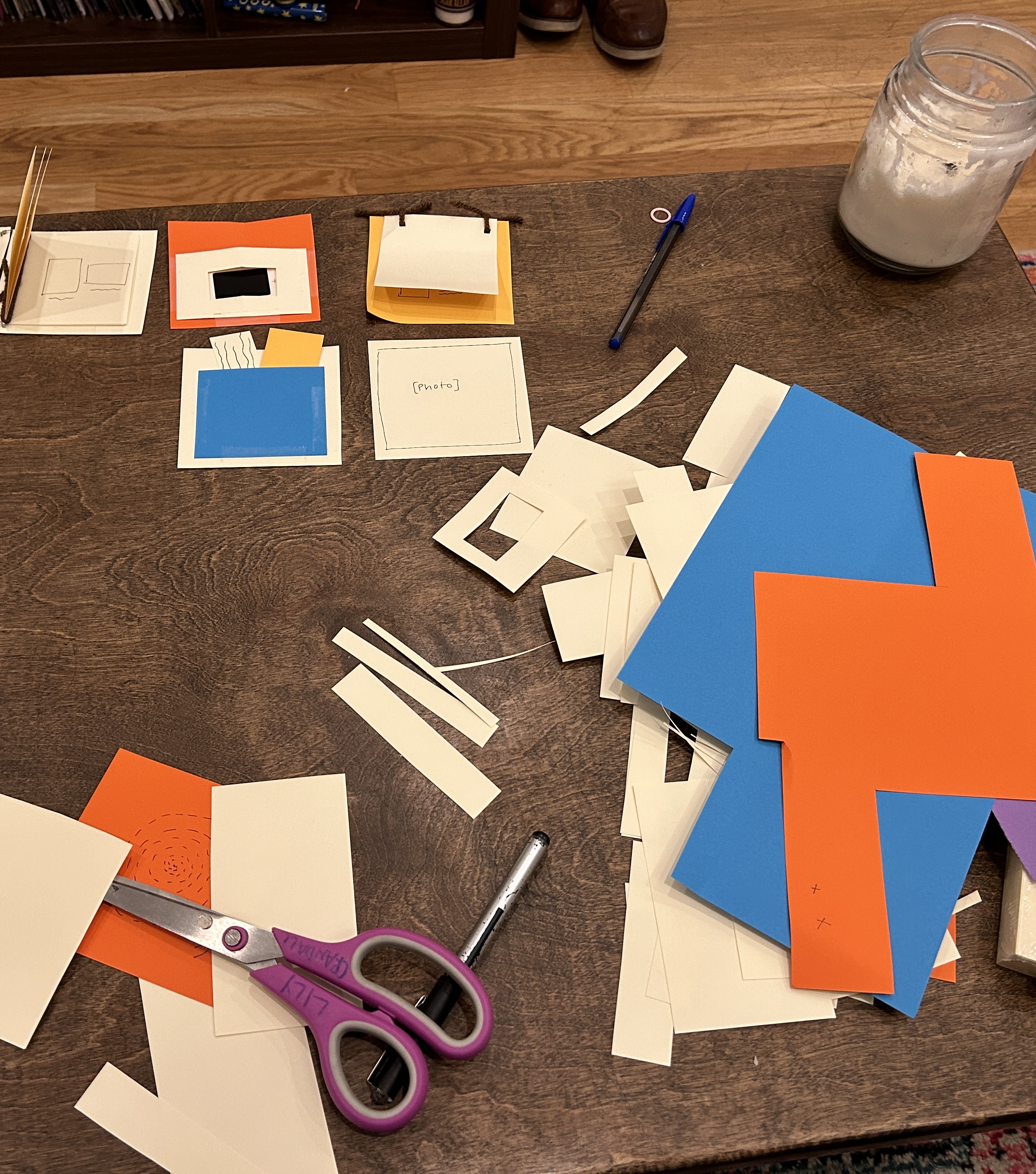 - Made the slides out of cardboard, printed vellum paper, magnets, fabric, and hot glue. I’m not thrilled with how these came out - I wish they looked more like real film. Maybe for the spring show.